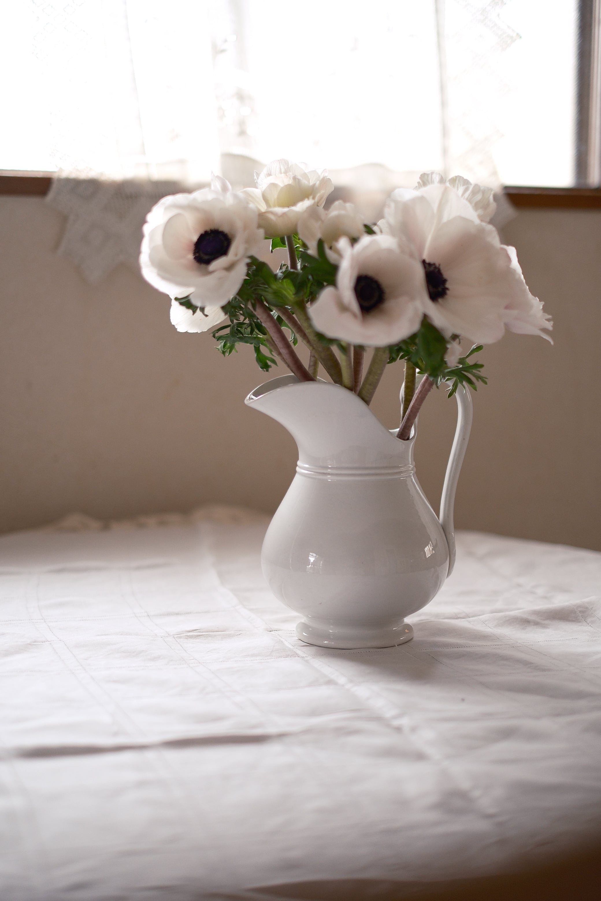 窓辺の光を受けると、白磁の表情がやさしく変わり、