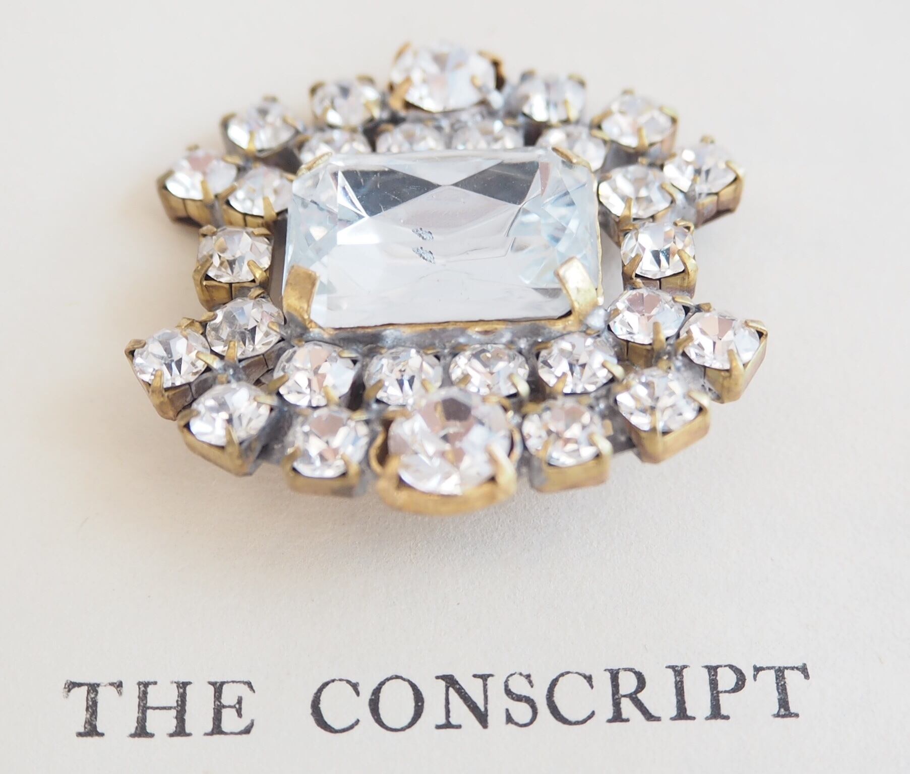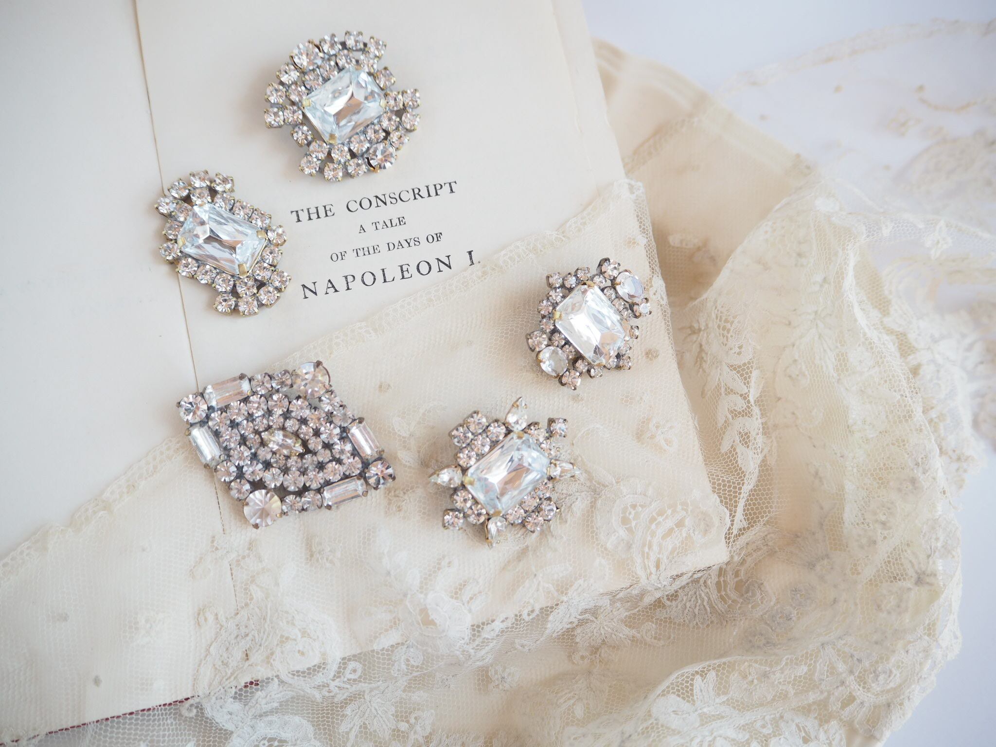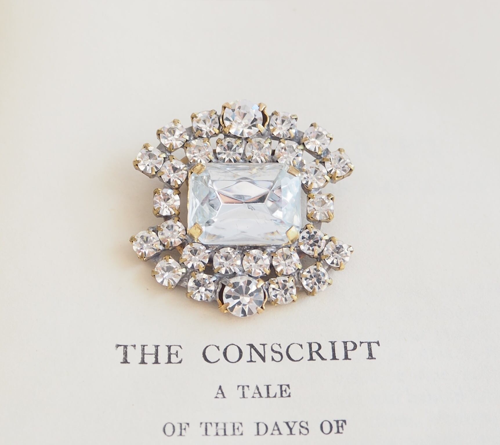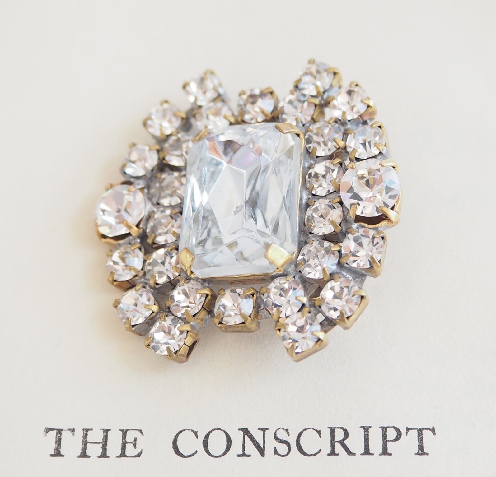 チェコのヴィンテージガラスパーツを使用したブローチです。貴重なパーツで、職人が一個一個手作りしています。
