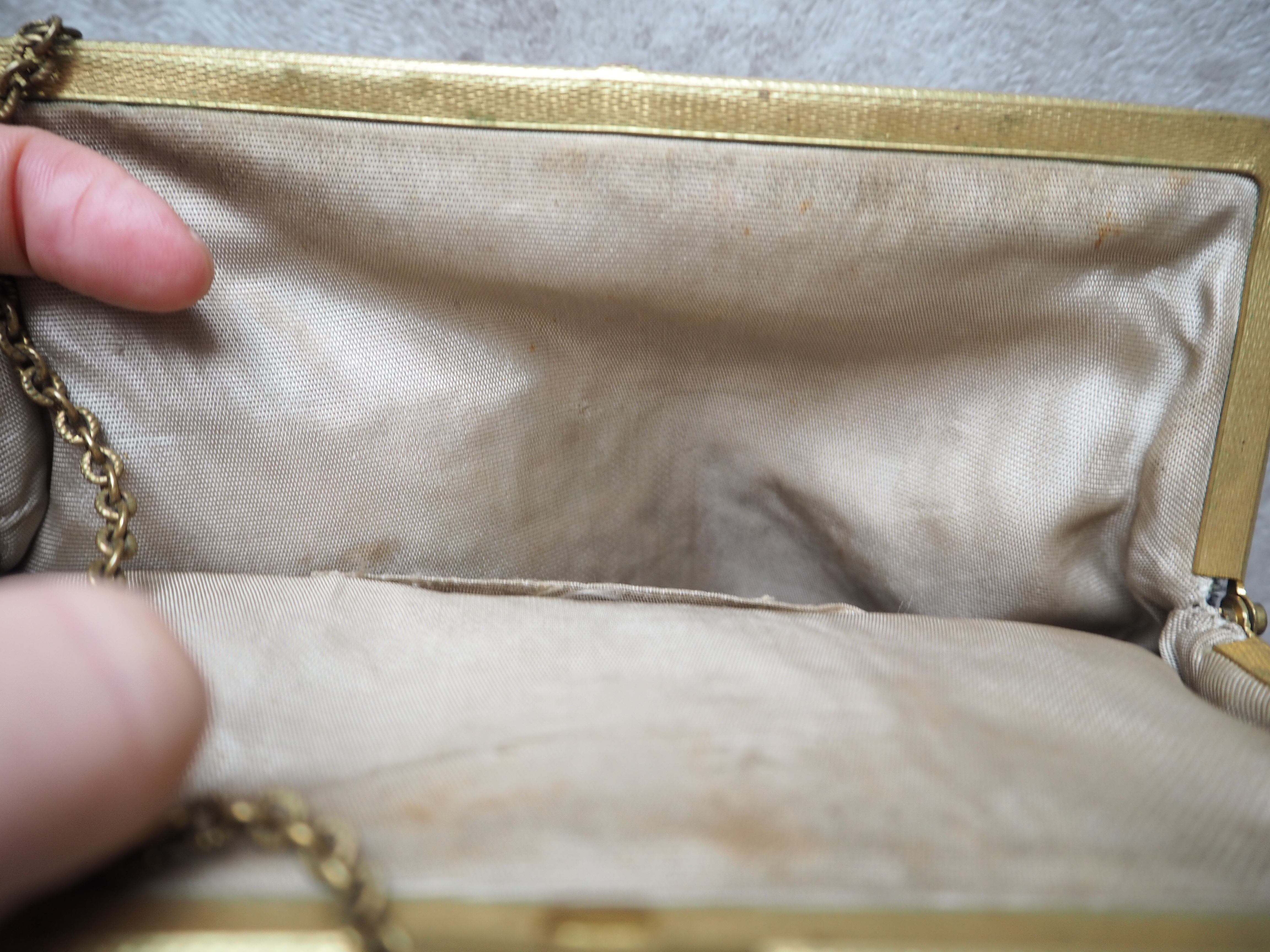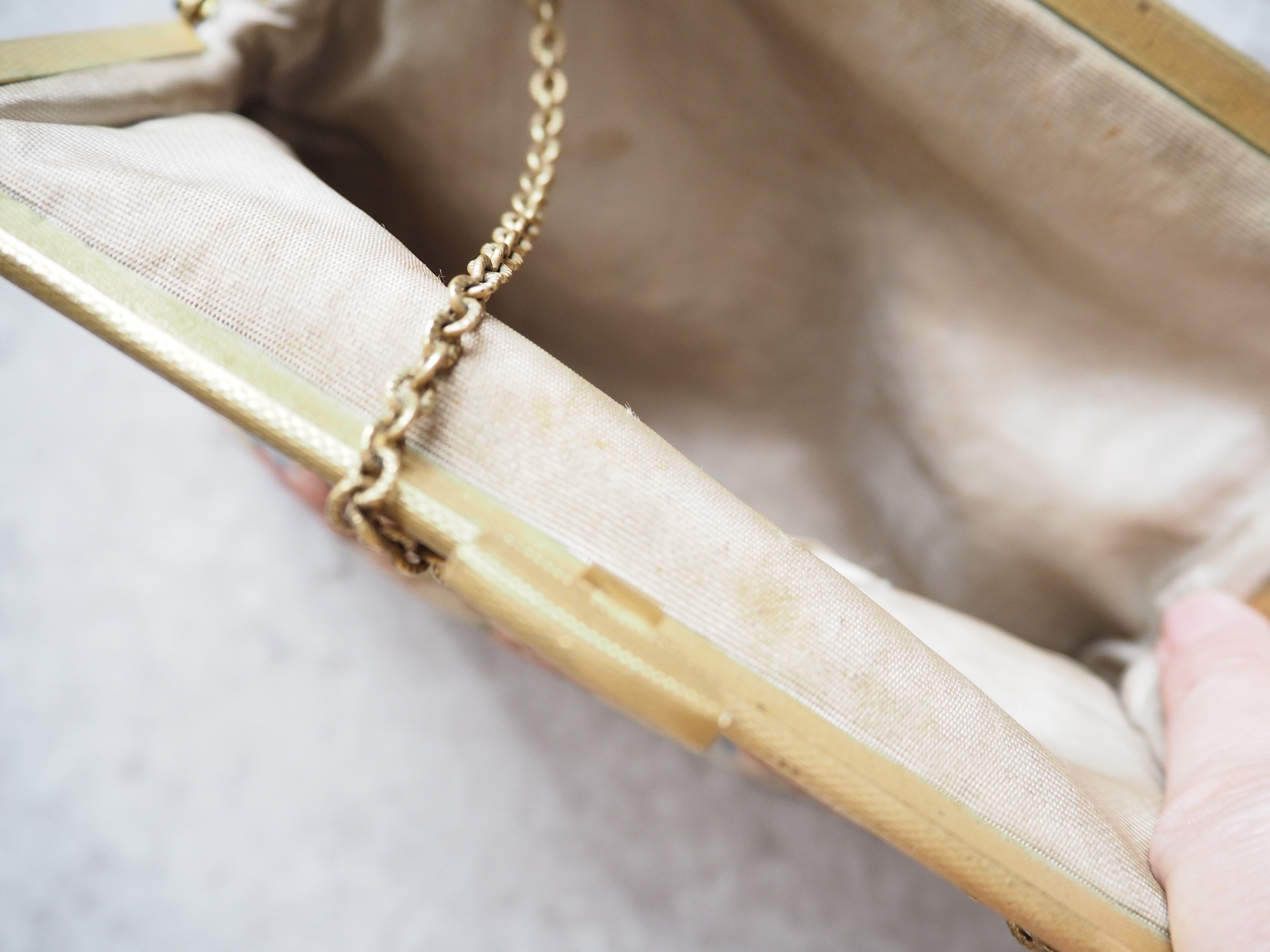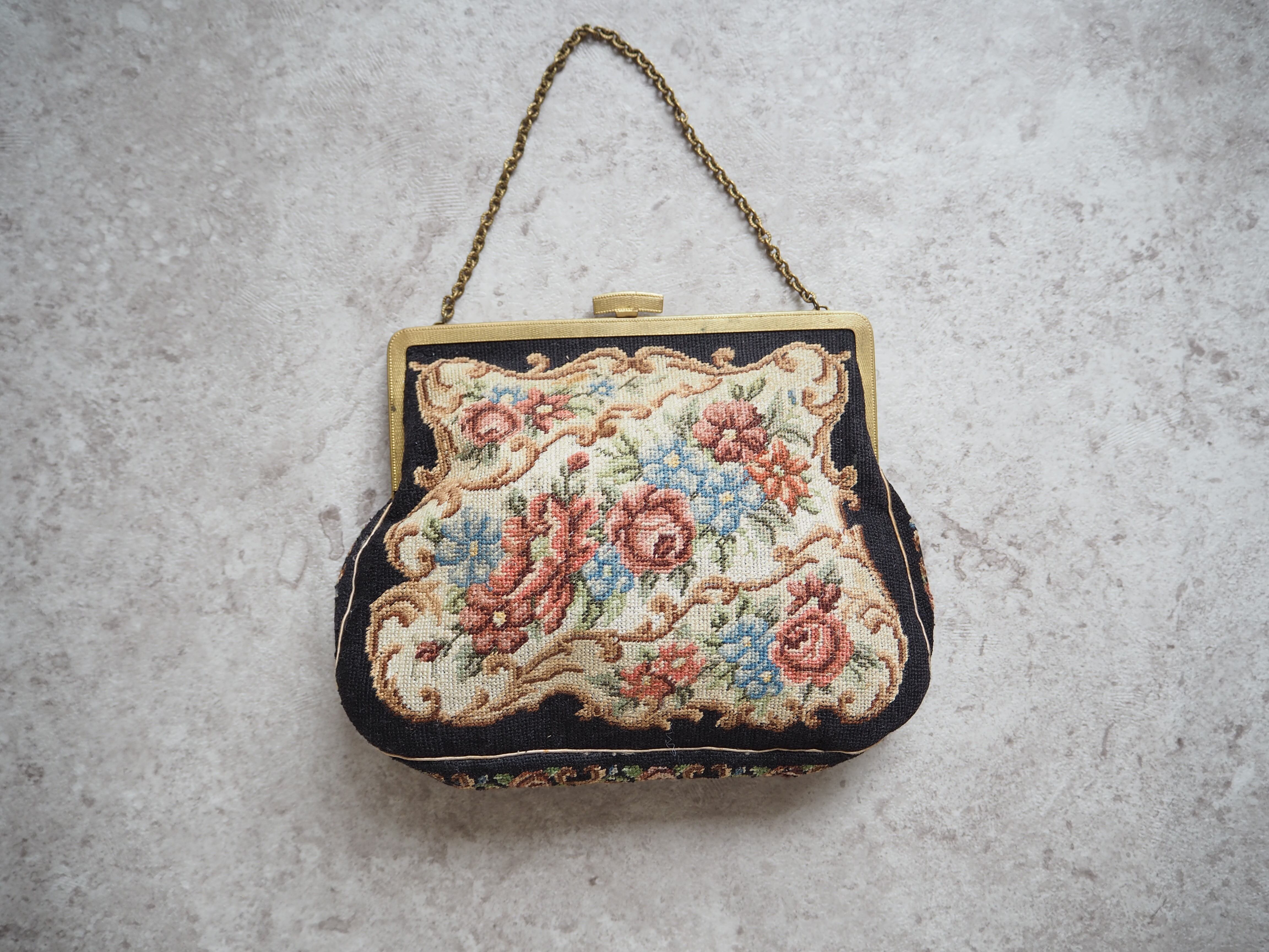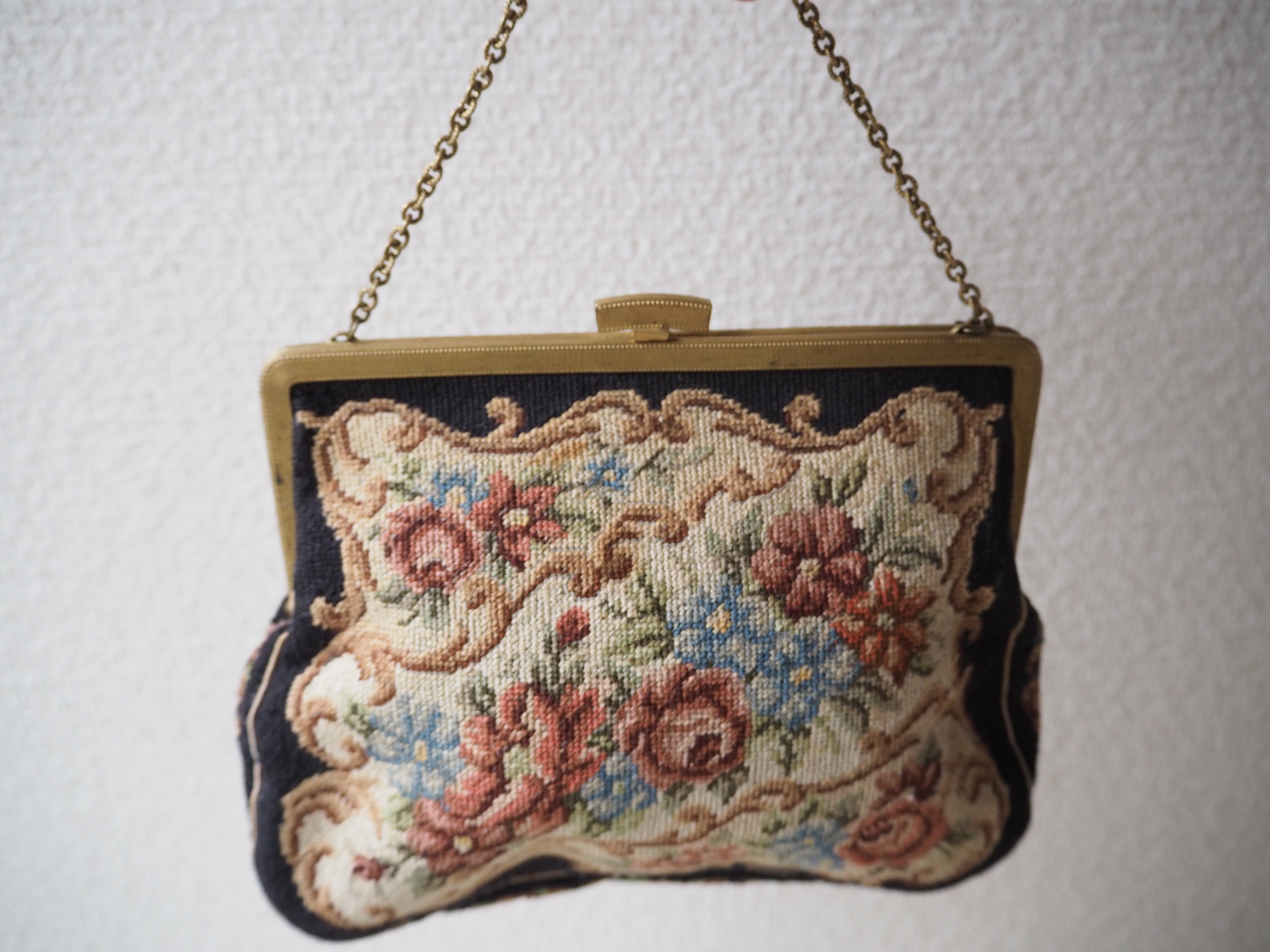 アンティークのプチポワンミニバッグ。