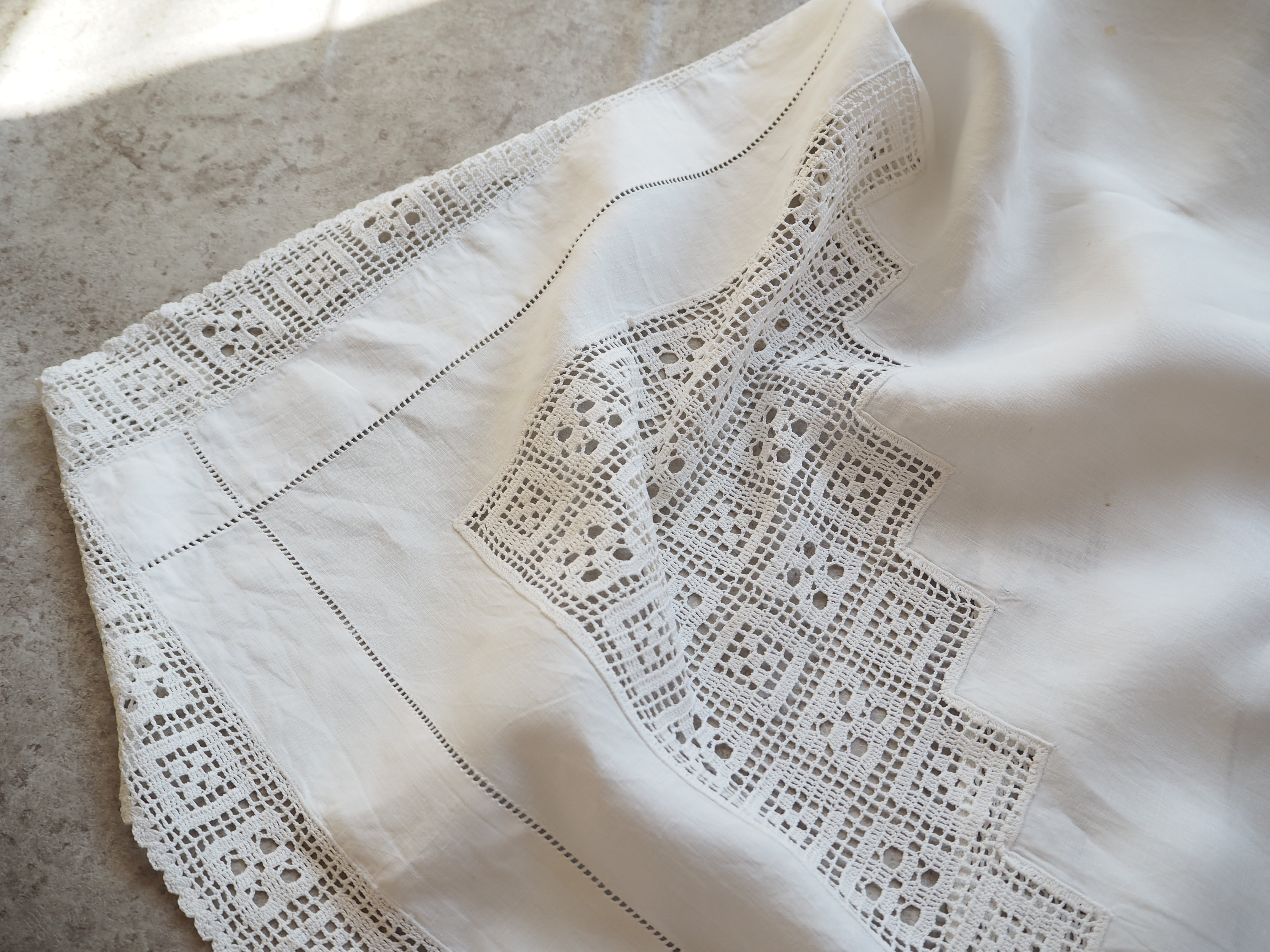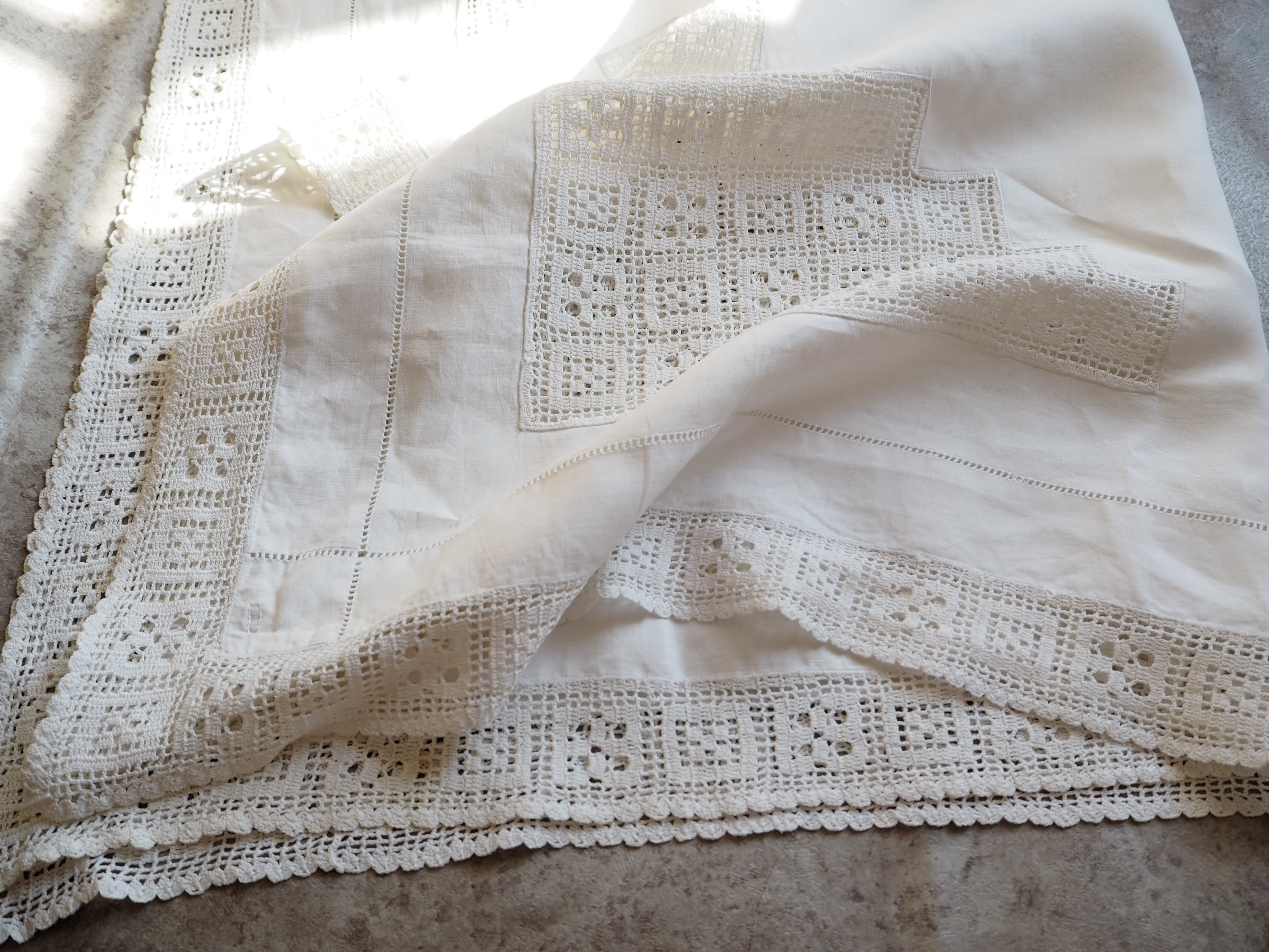 レース部分は、しっかりとした太めの糸で編まれているので、とても長持ちすると思います。網目もとても正確に編まれていて、とても慣れた方のお仕事だなぁっと思います。
