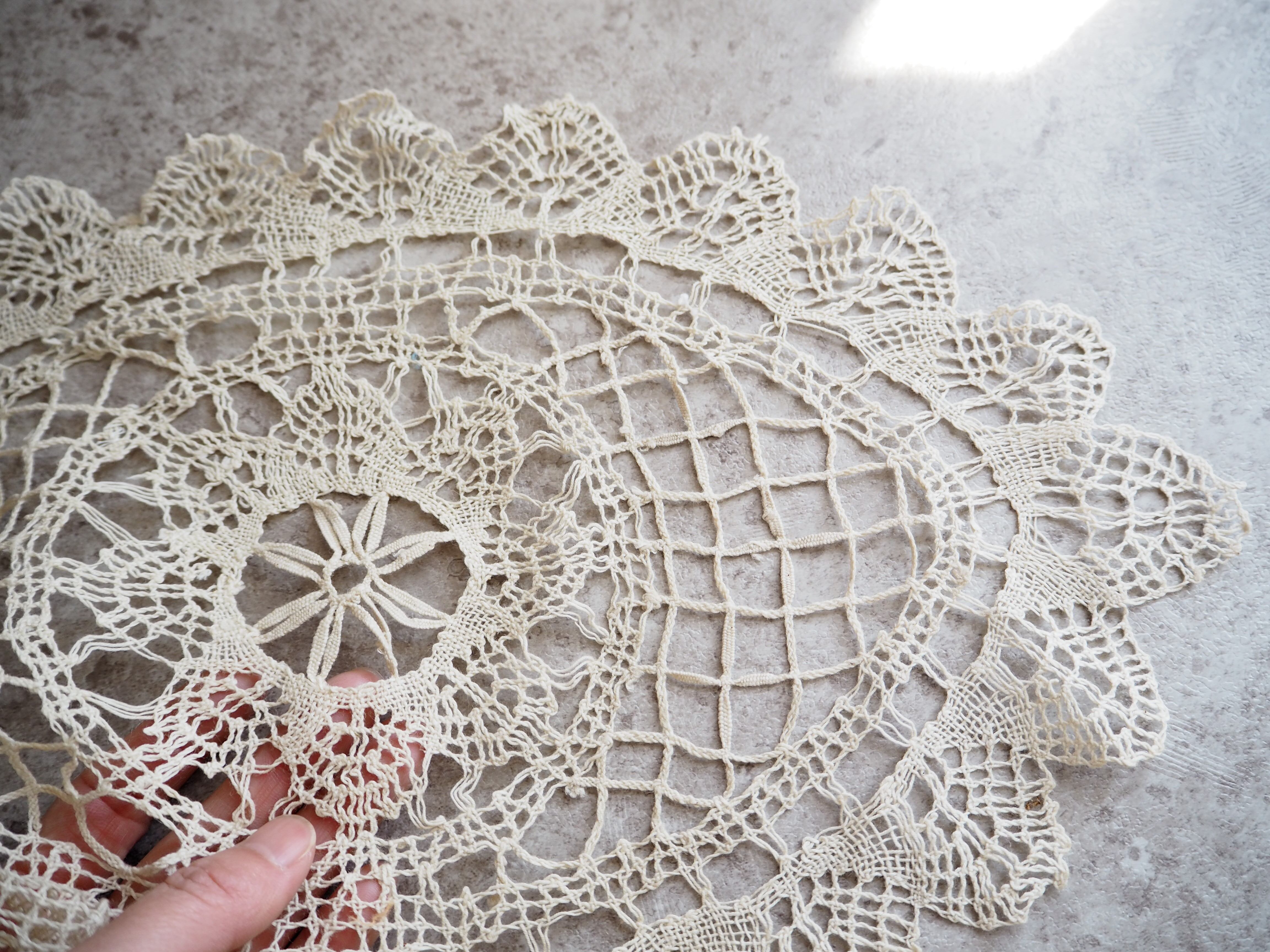 アンティークのボビンレースです。