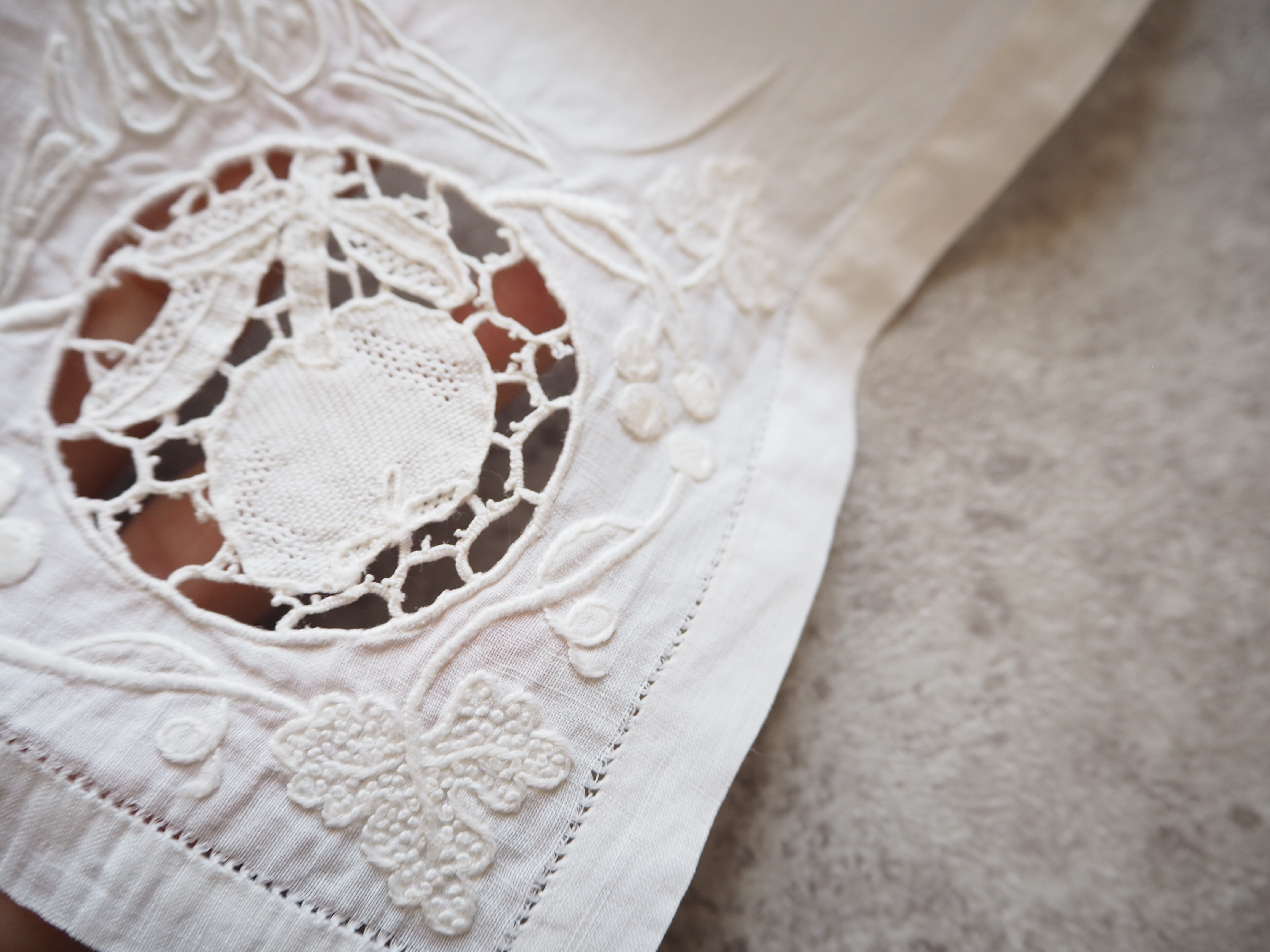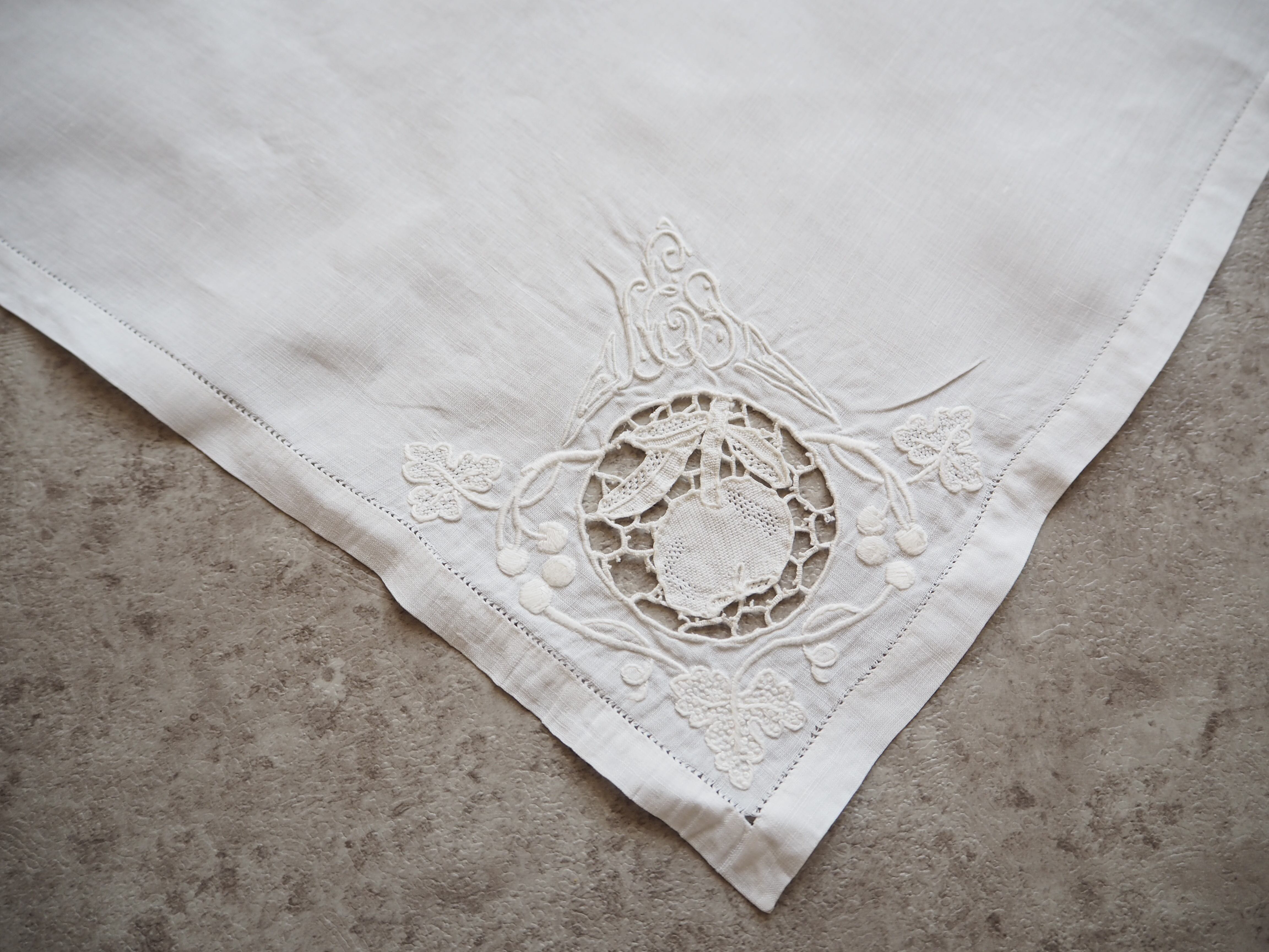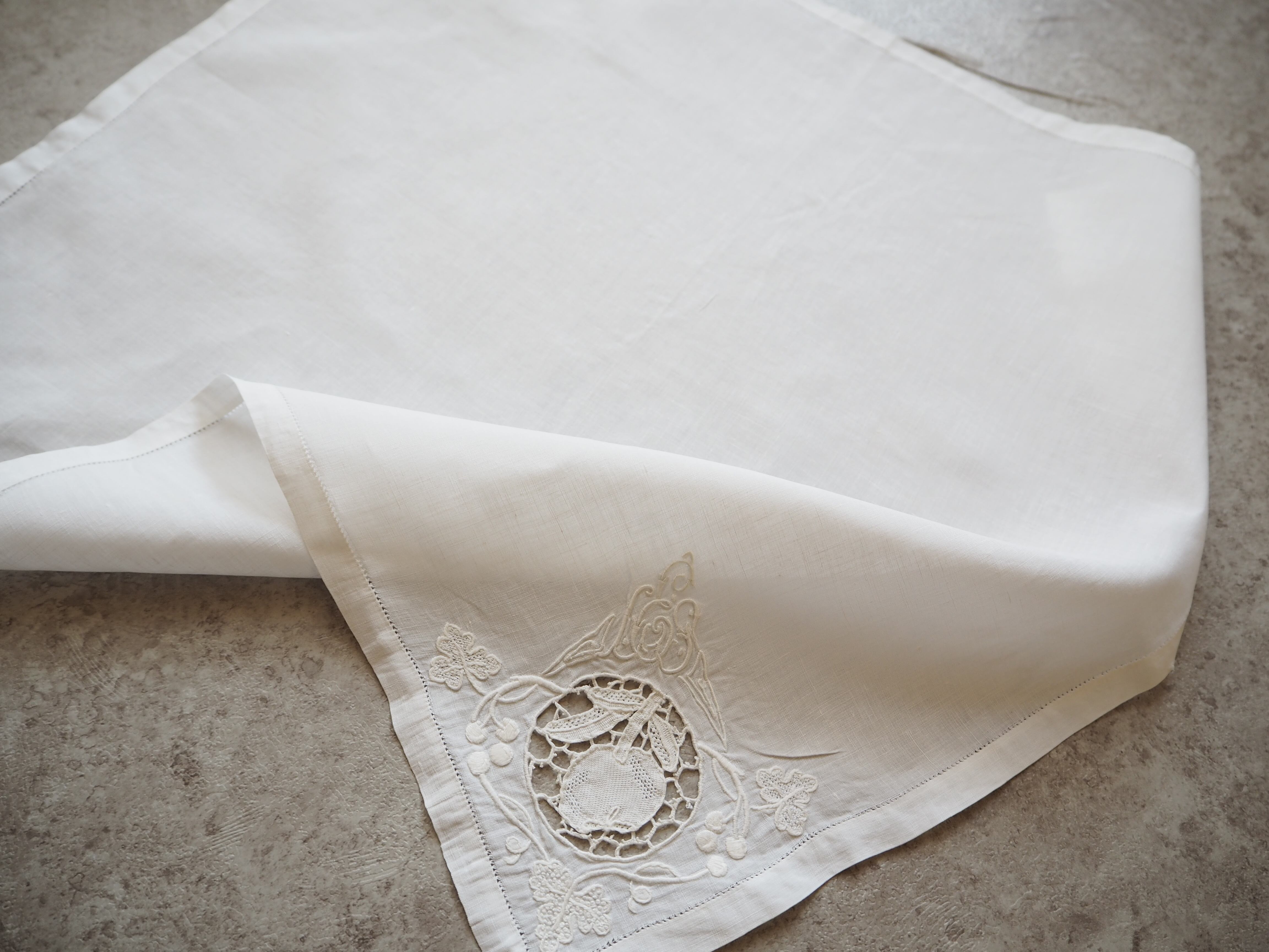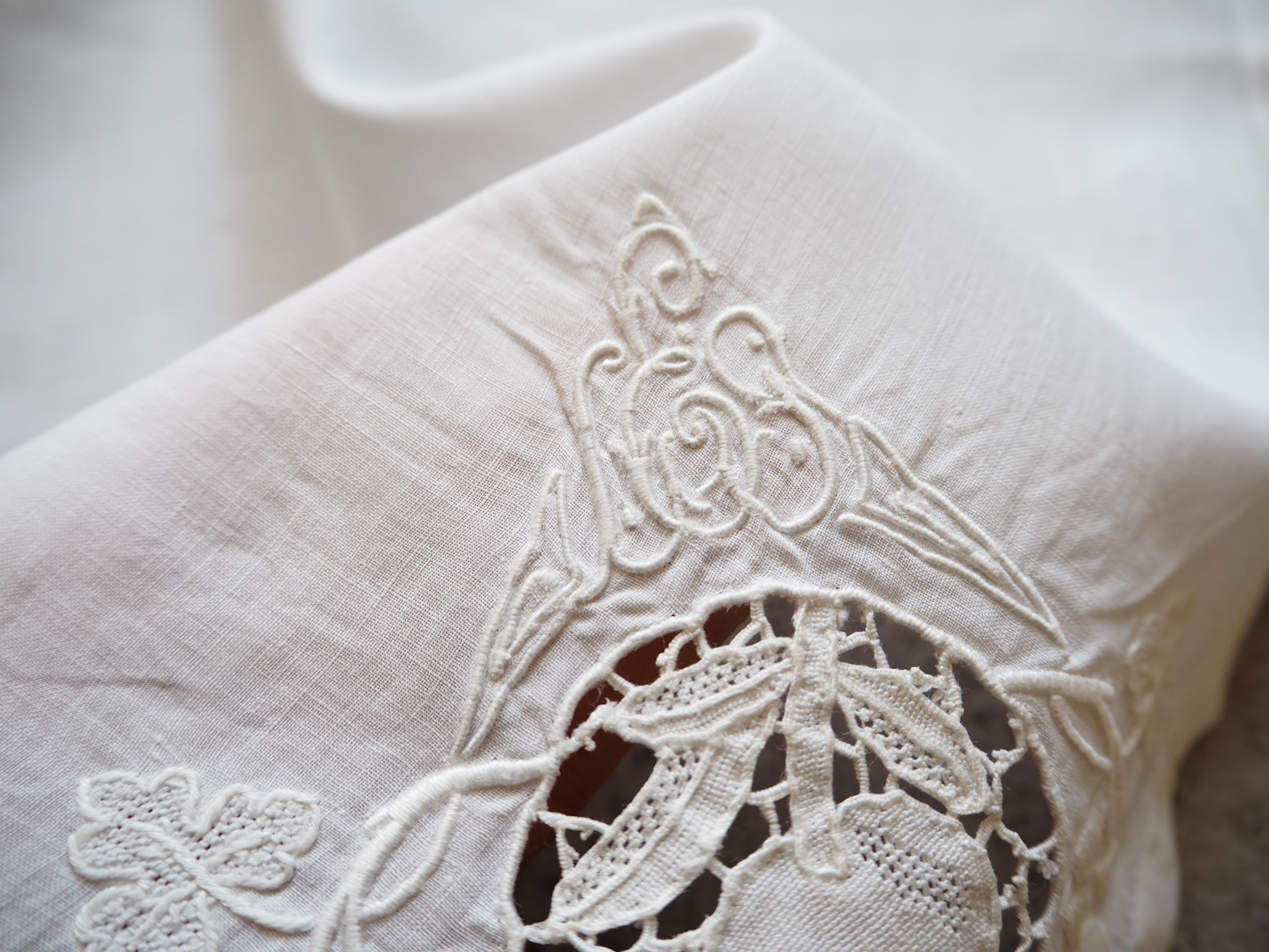 とても素敵で繊細な刺繍とレースが施されたリネン のナプキンです。