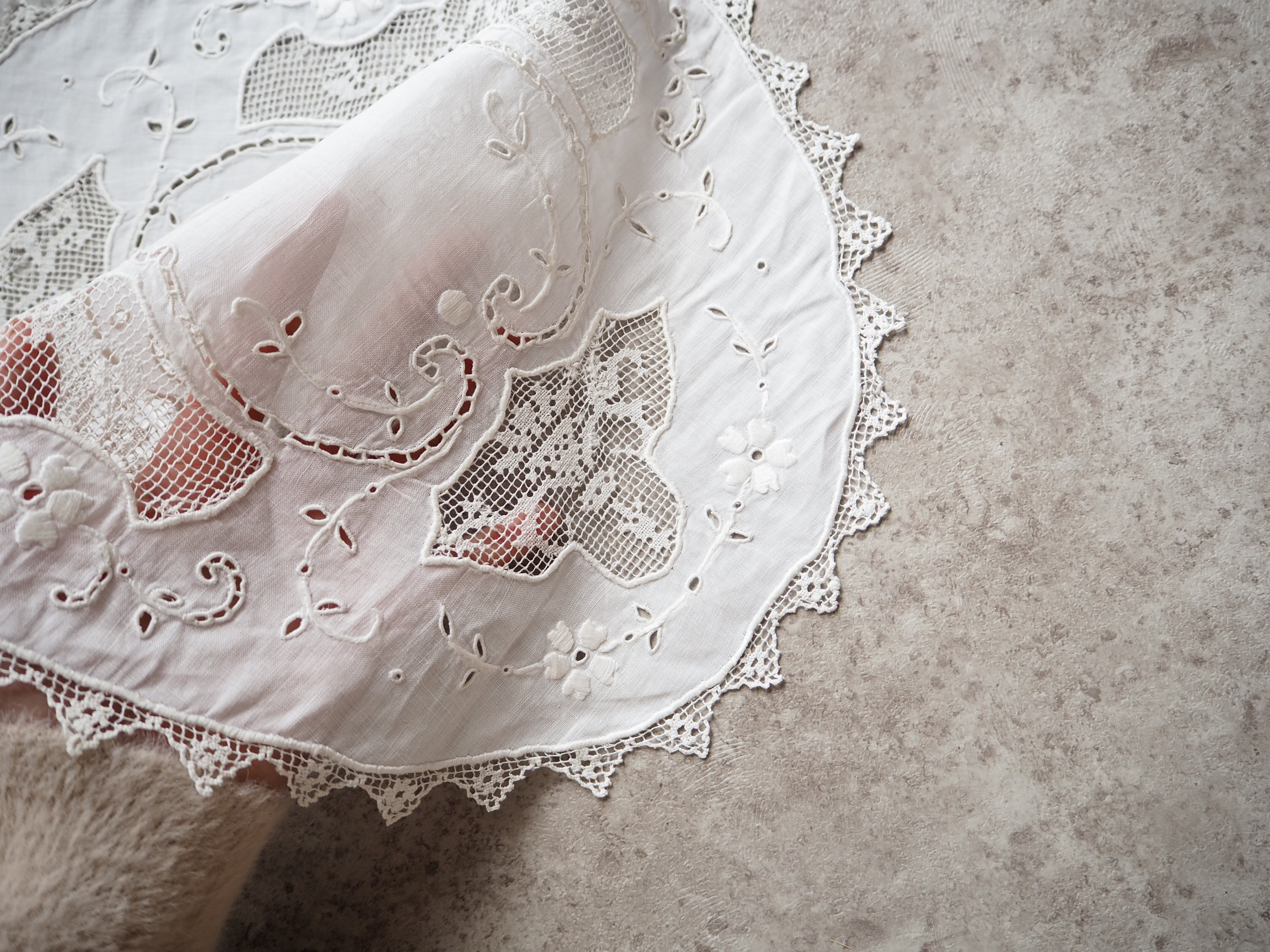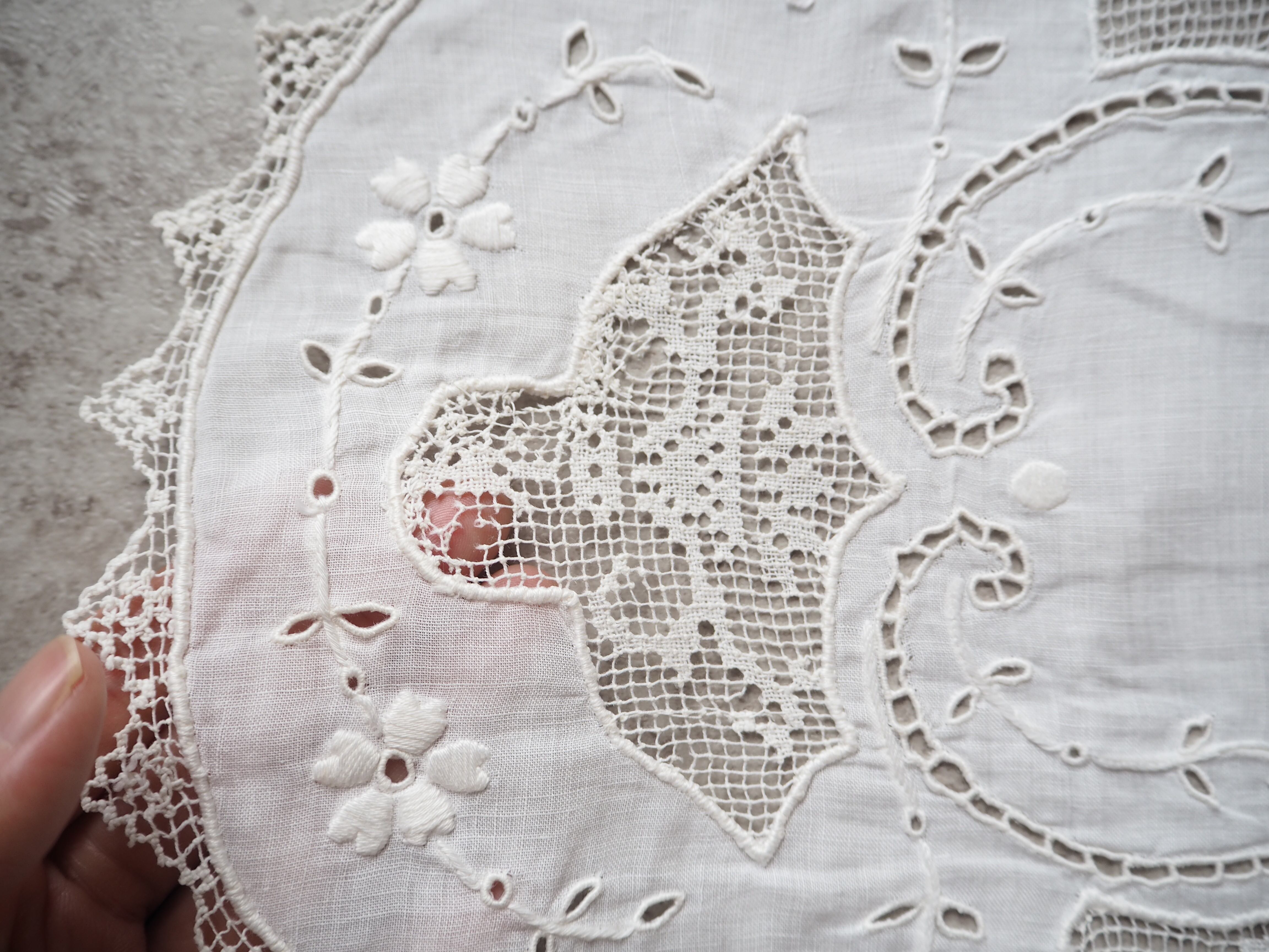 お花の刺繍とフィレレースがかわいいアンティークレース C
