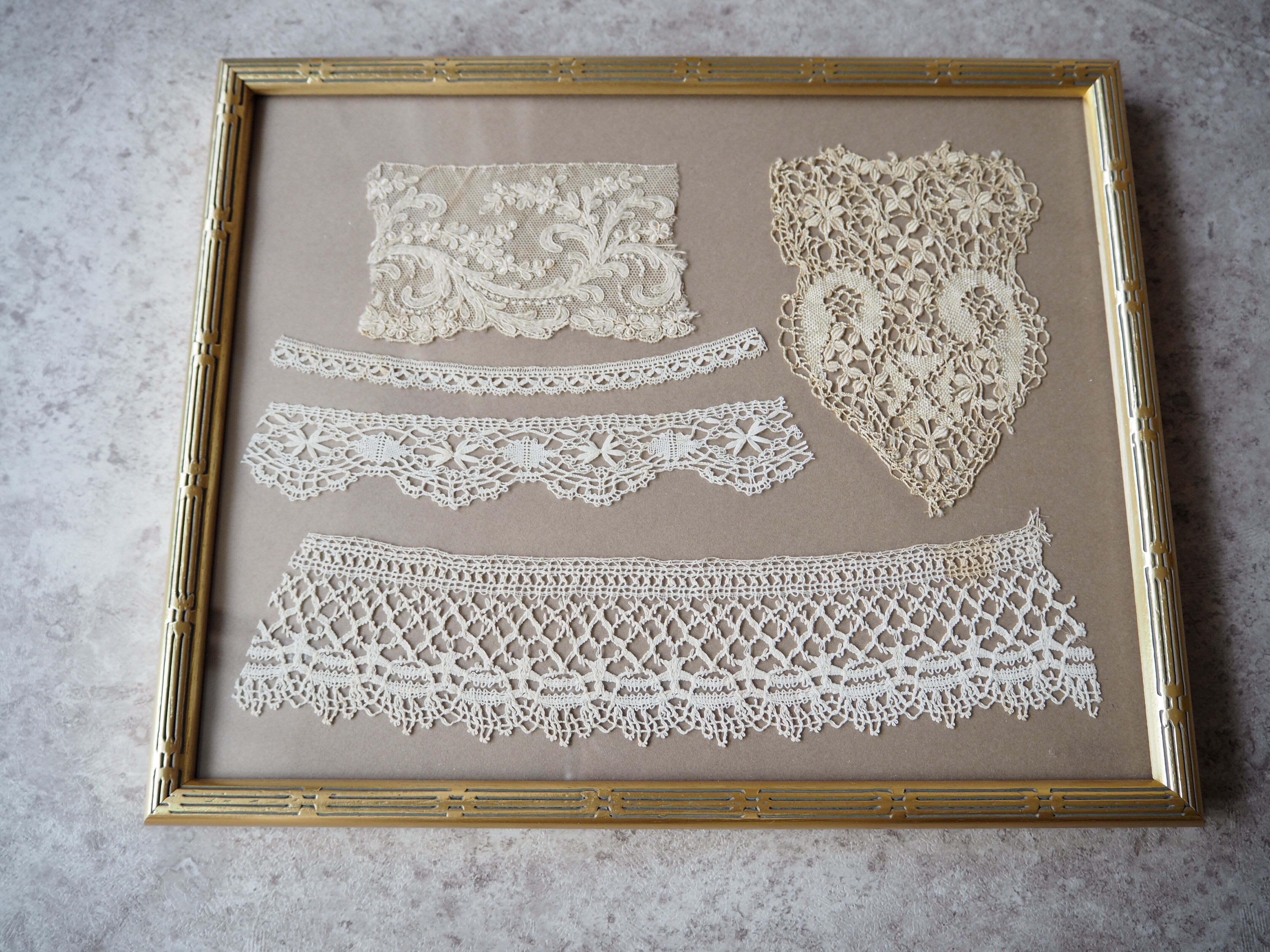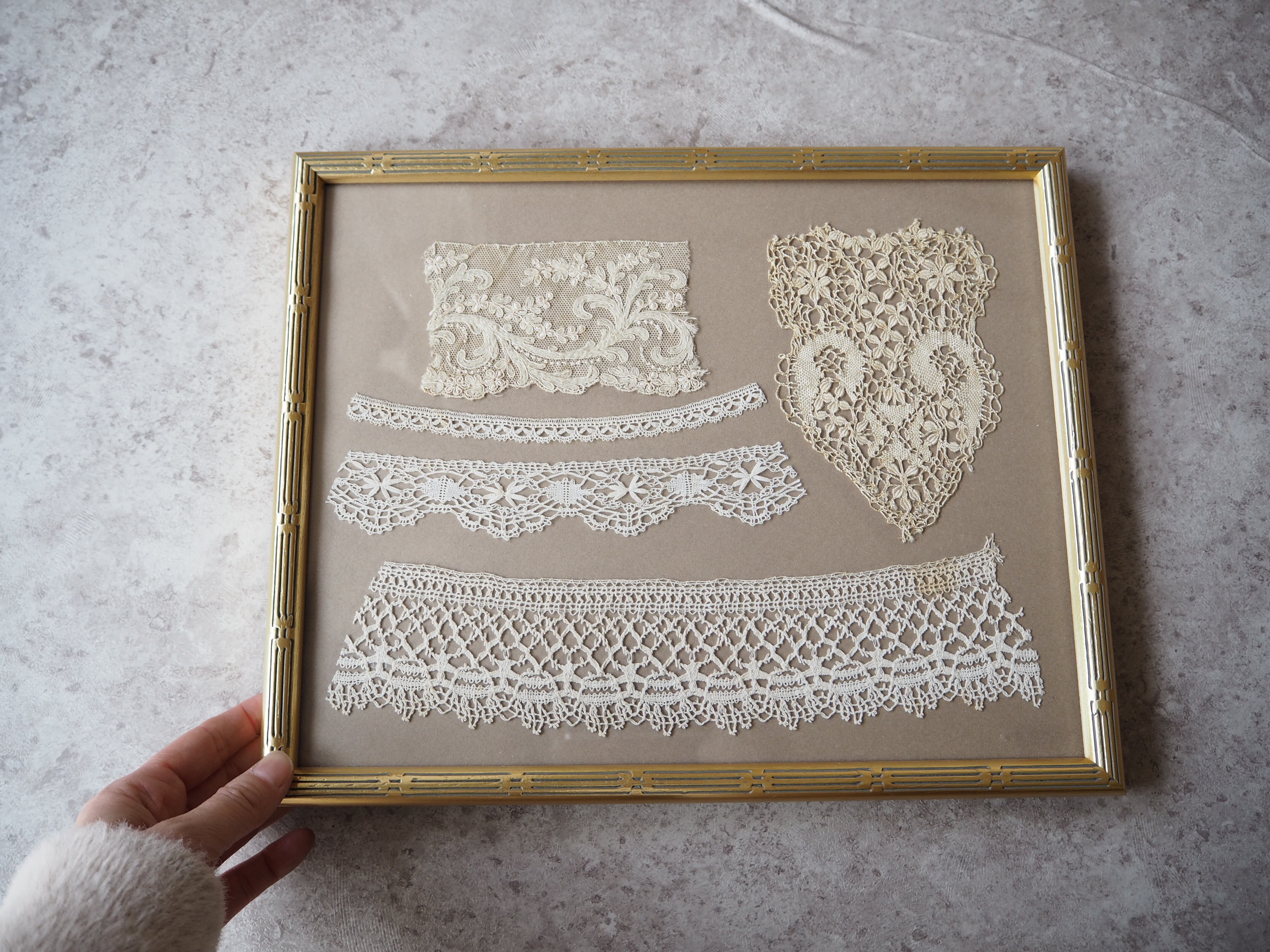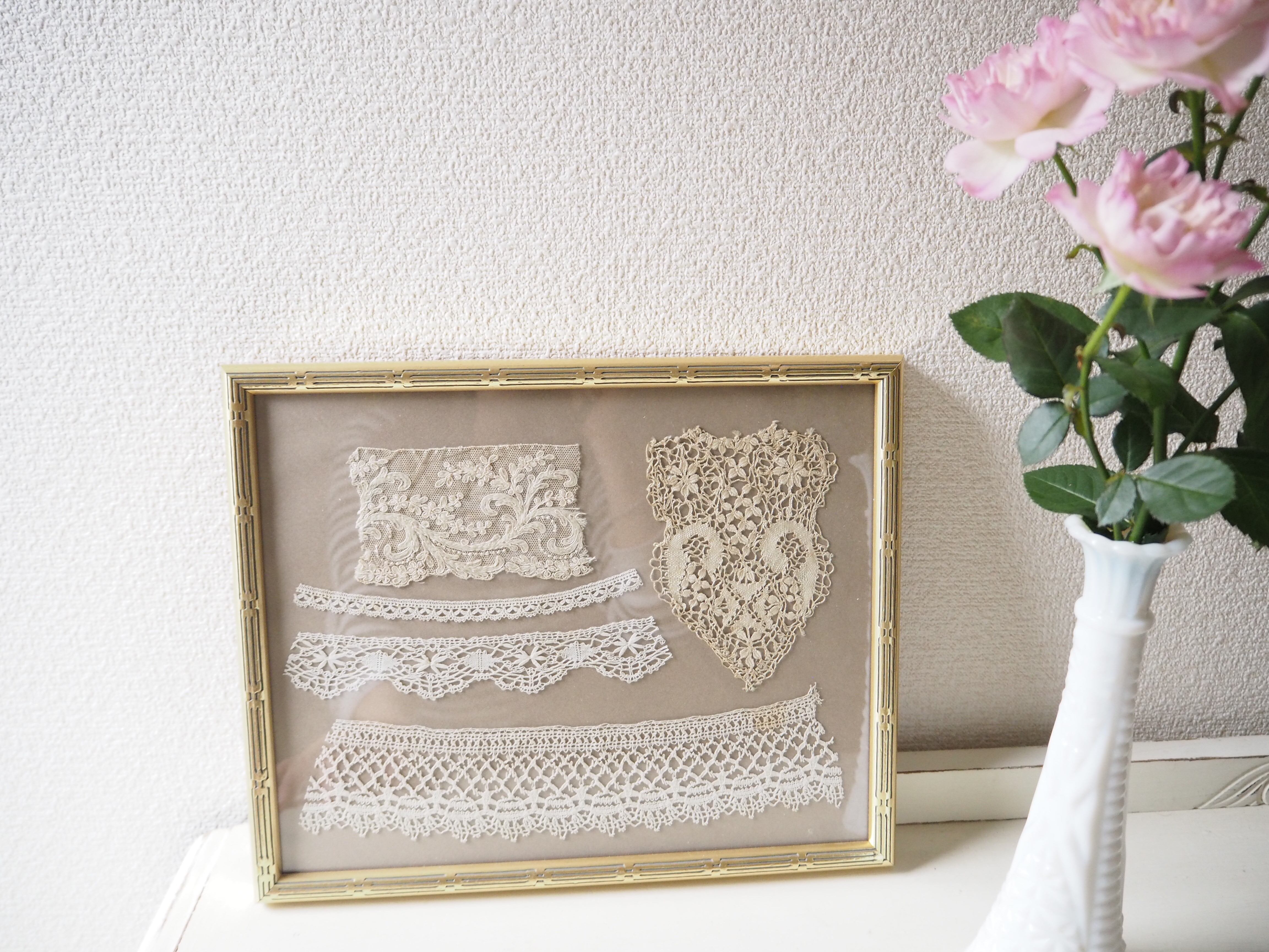 繊細で美しいアンティークレースをフレームにコラージュしてみました。