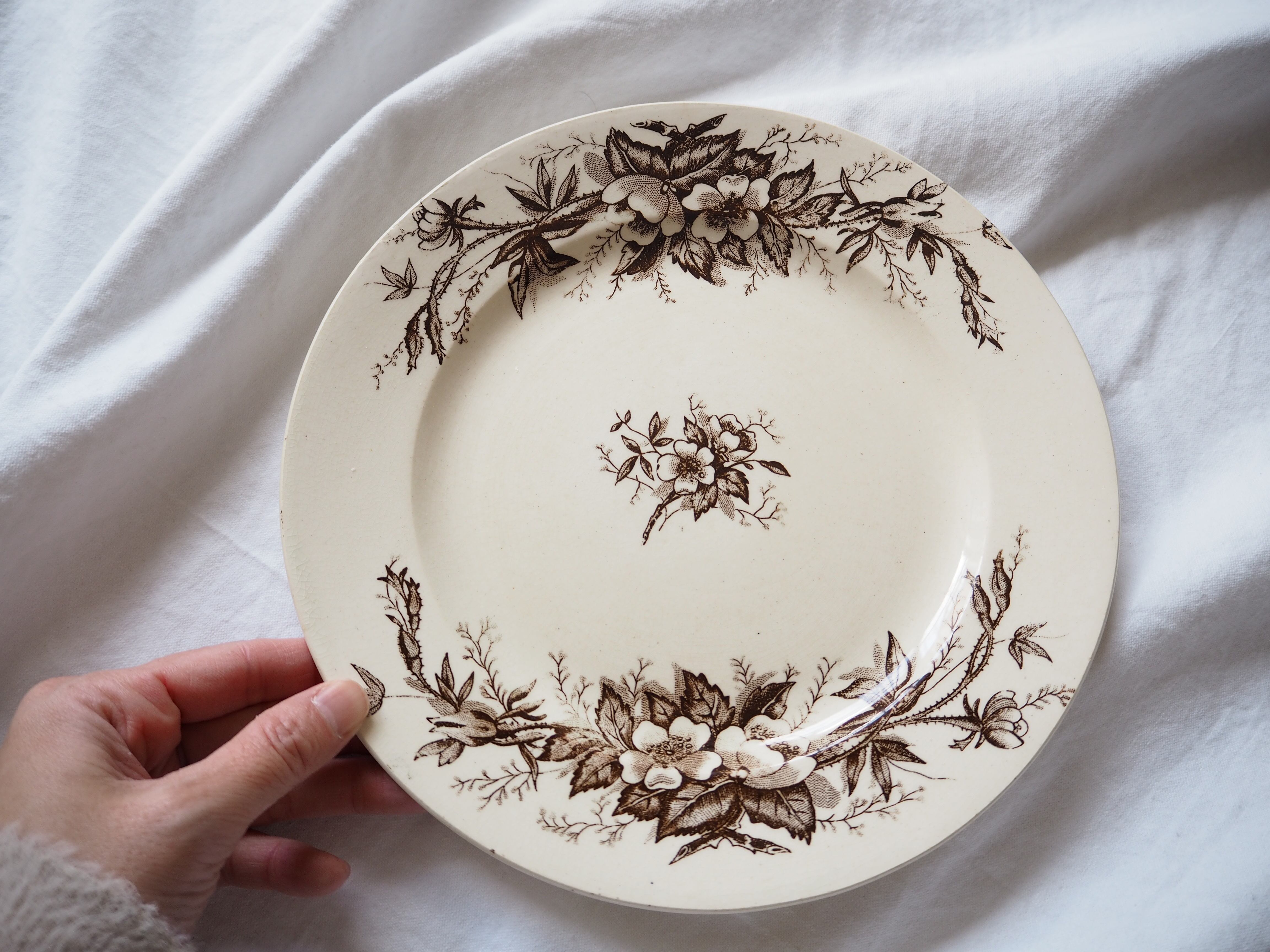クリーム色の下地に、茶色の野ばらがとてもかわいいお皿。