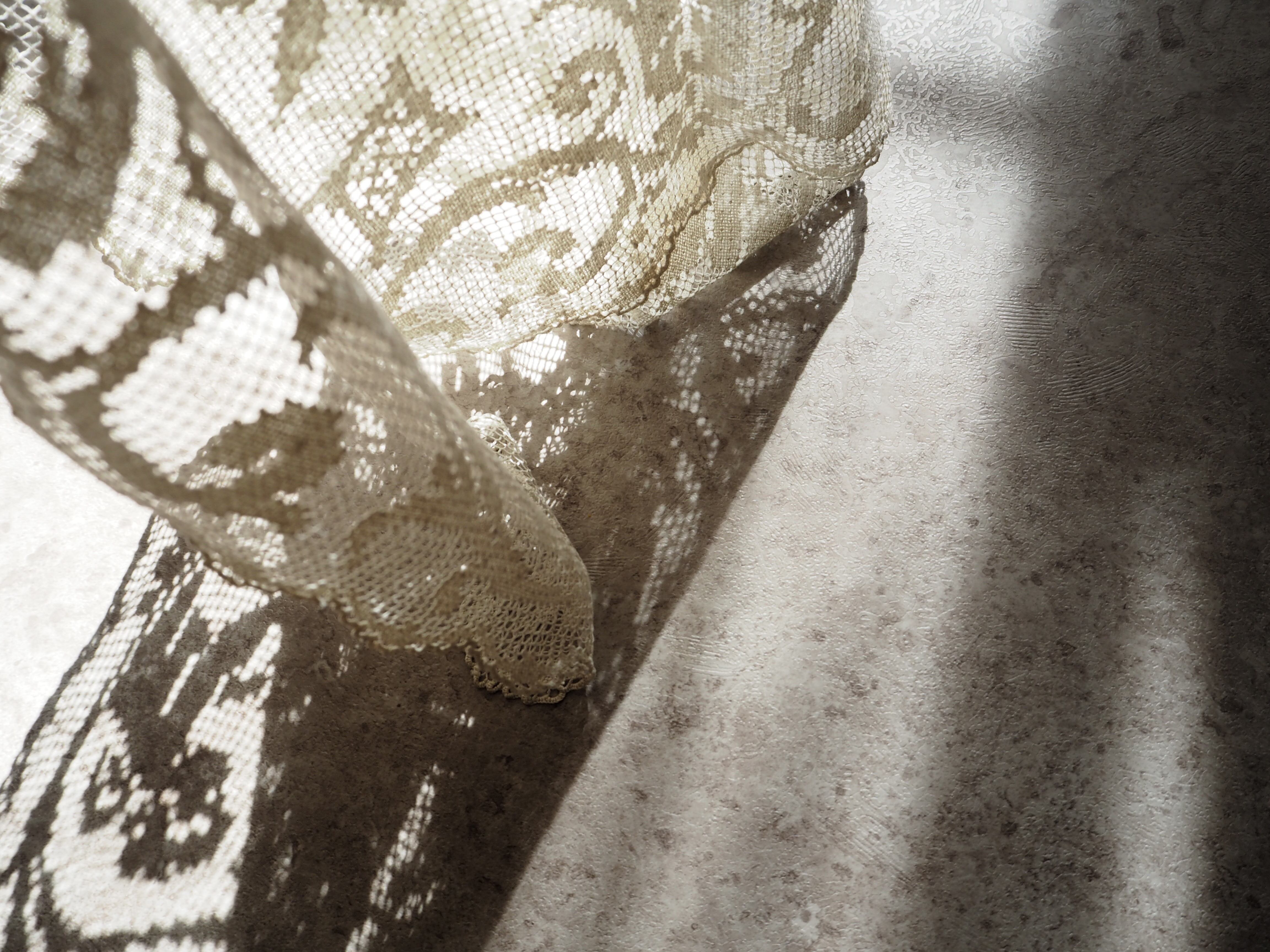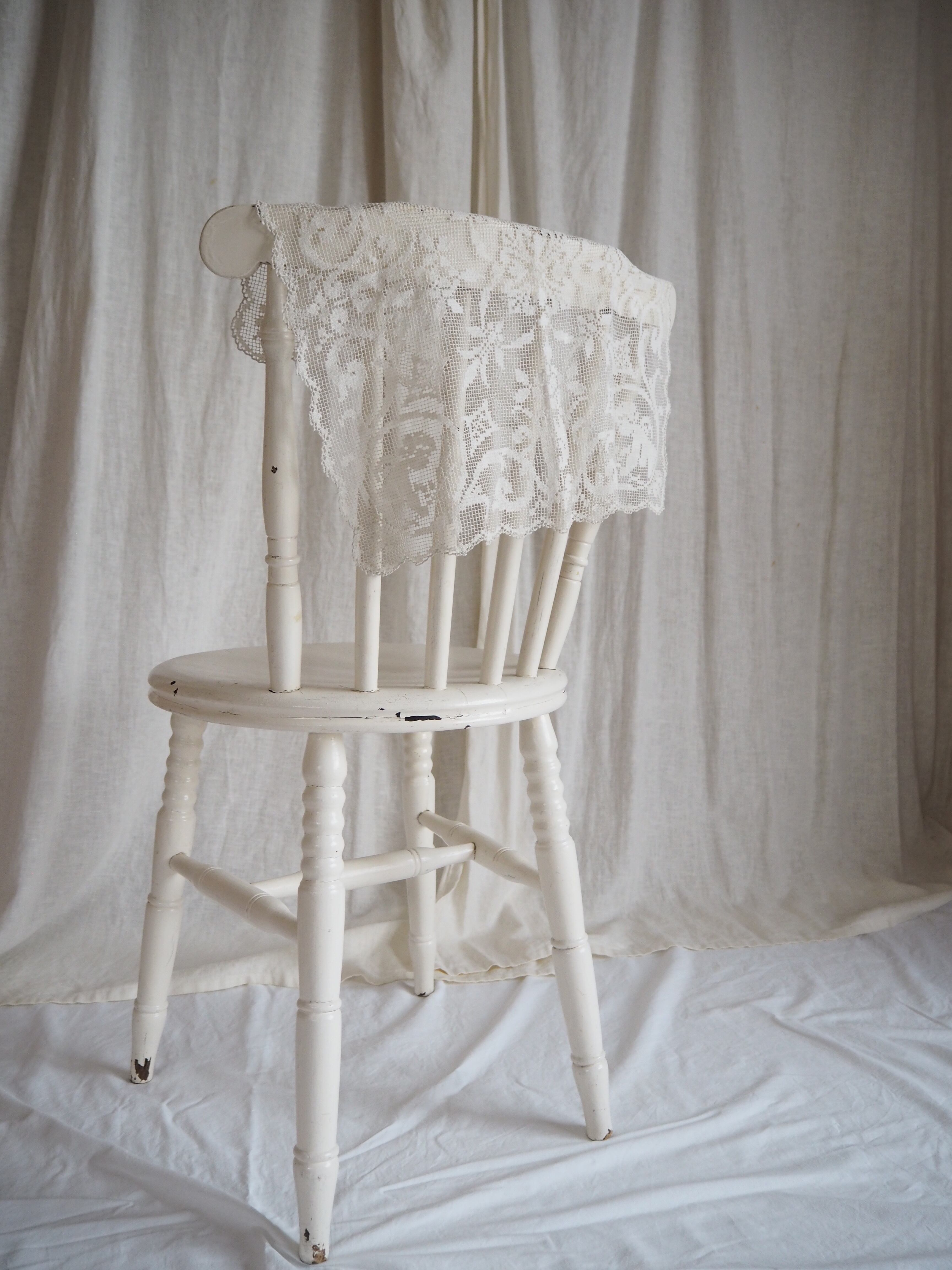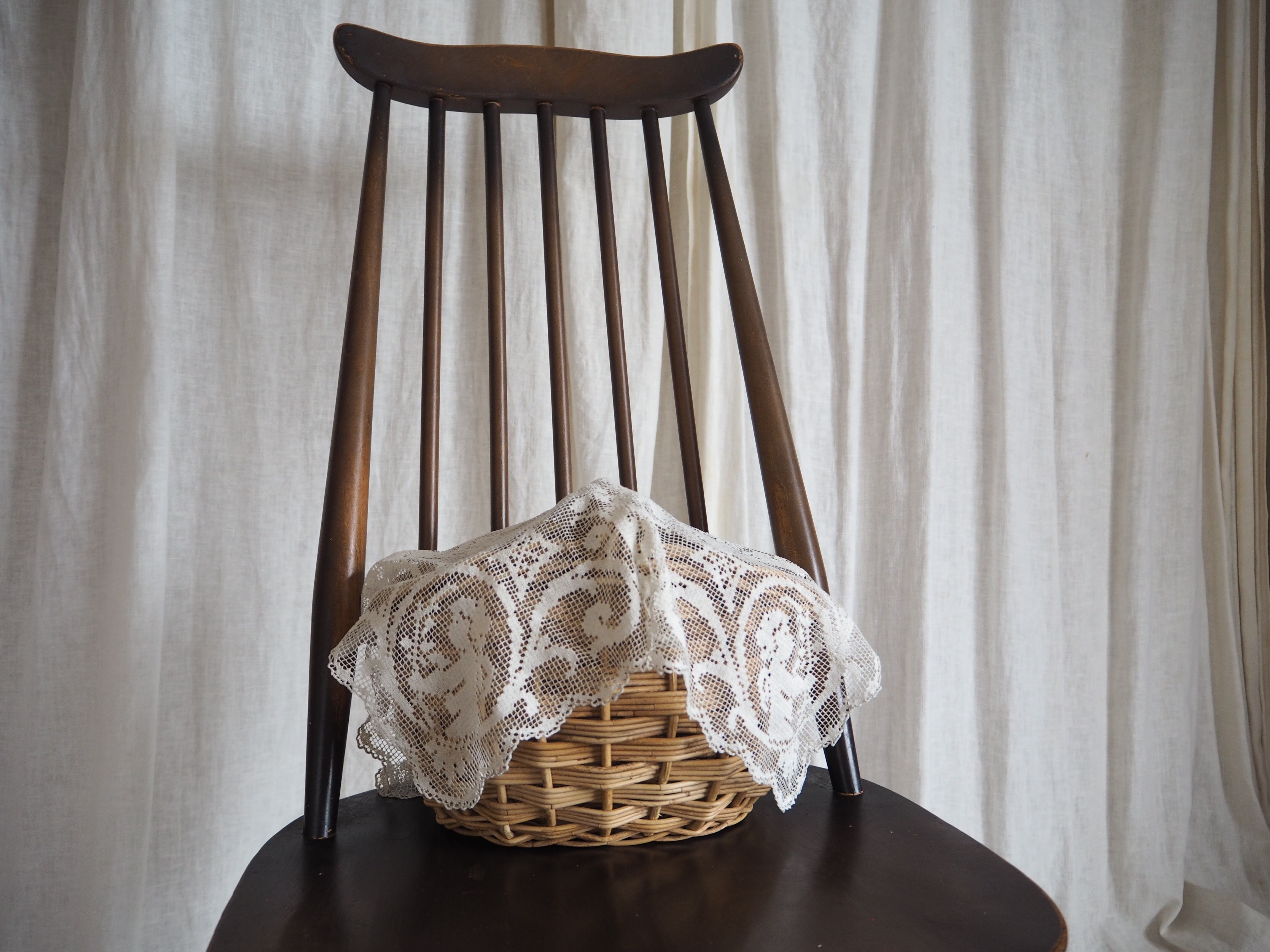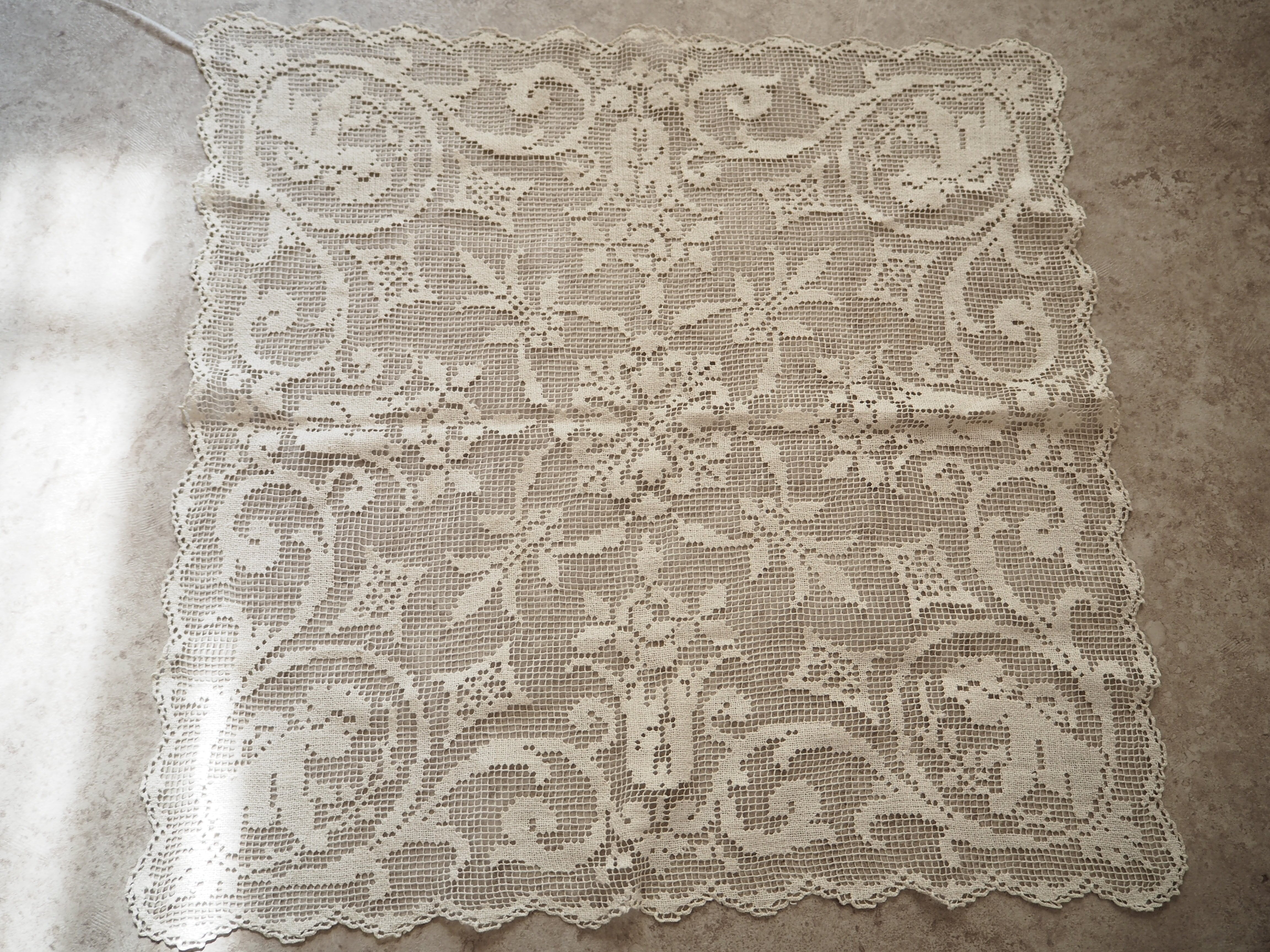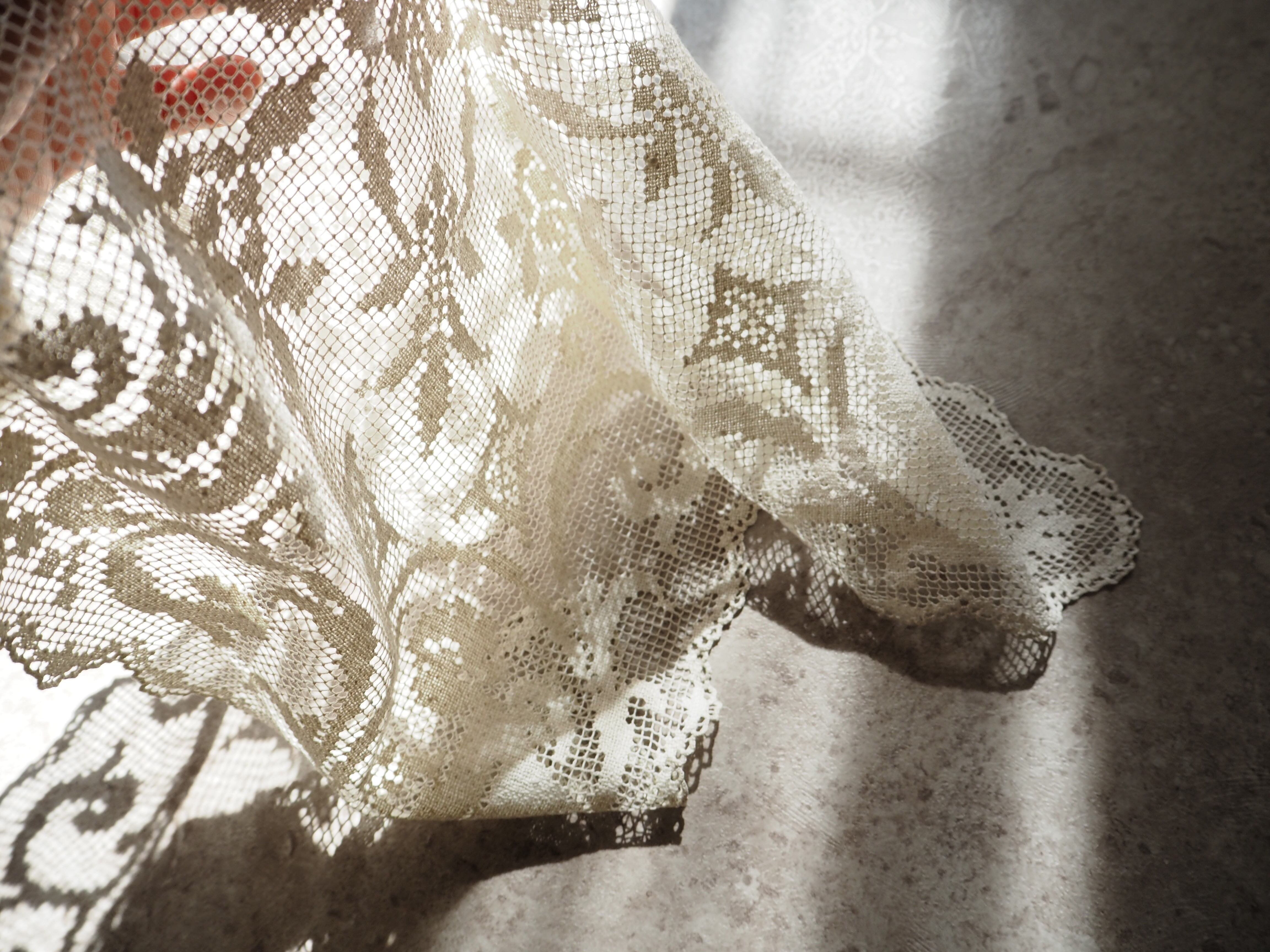 天使がとてもかわいいほっこりとしたあたたかみのあるフィレレース。バラのお花や、天使が月桂樹の葉っぱを持っていて愛らしいレースです。