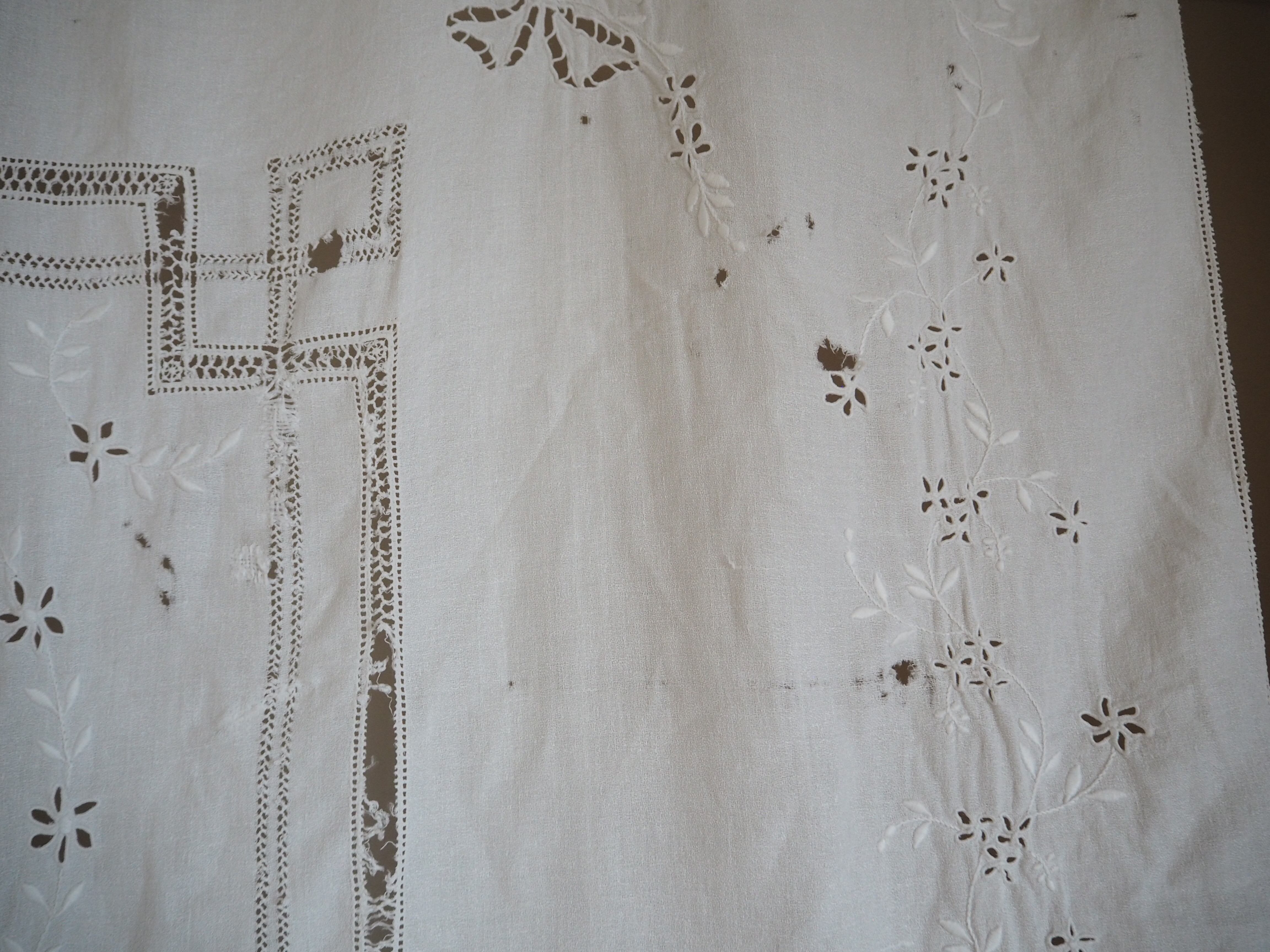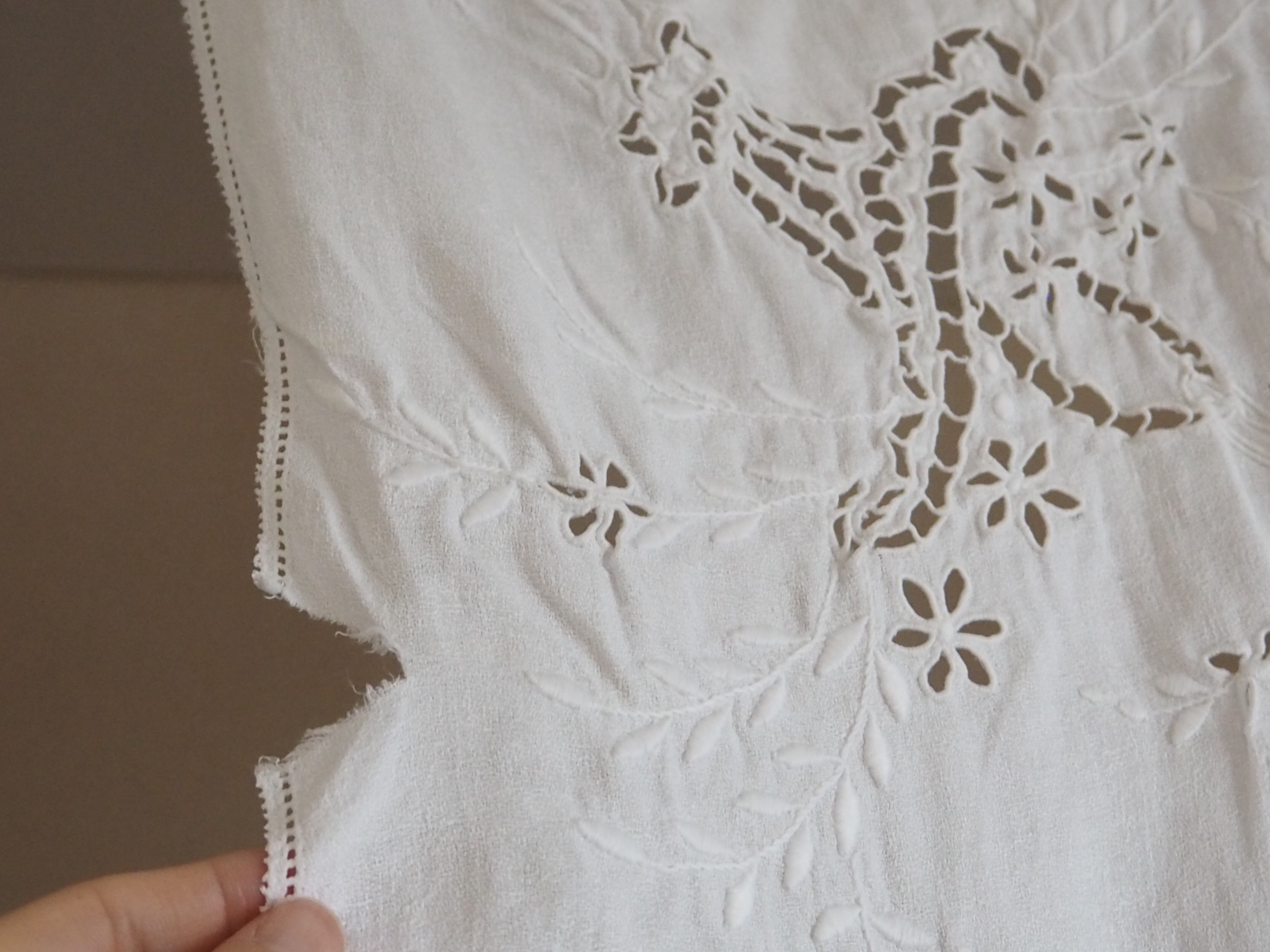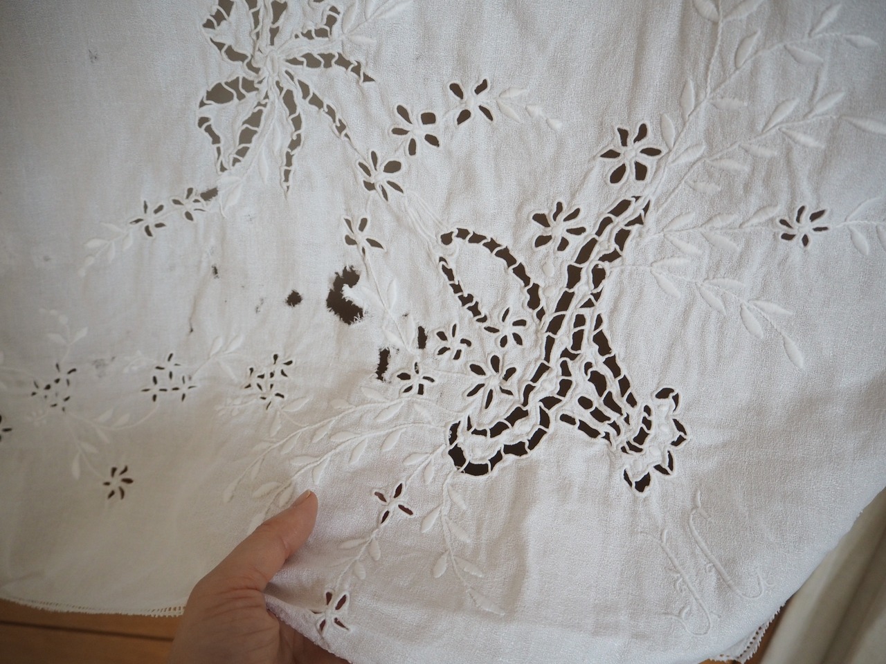 French antique lace バスケットモチーフがかわいいアンティークテーブルクロス